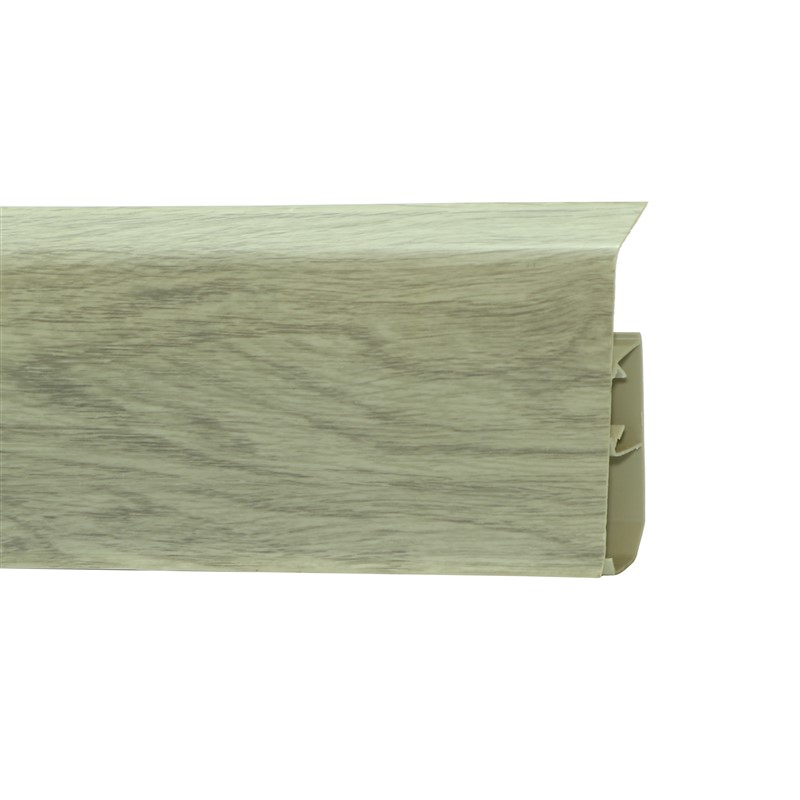 Утонченный и высокий профиль (80 мм) с острыми краями. Благодаря съёмной панели монтаж электрических проводов, покраска стен, оклеивание обоями возможны без демонтажа профилей. Конструкция позволяет монтировать и демонтировать плинтус без использования инструментов. Существует возможность размещения большого количества проводов, в том числе после монтажа. Специальная двухслойная технология: помимо слоя краски, дополнительно покрывается специальным лаком, благодаря чему его покрытие становится однородным, а это дополнительно защищает изделие от разного вида механических повреждений и вредного воздействия лучей УФ. Благодаря эластичному материалу, плинтус идеально прилегает даже к неровностям стен и полов.