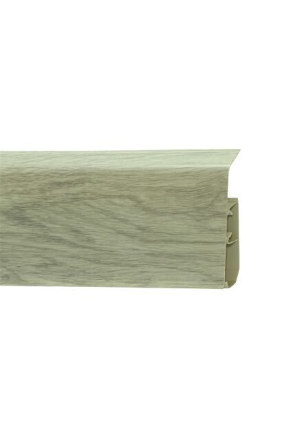 Высокий влагостойкий плинтус 80 мм с древесной текстурой "Дуб Венеция", скрывает зазоры и провода, легко монтируется, идеально для любого интерьера.