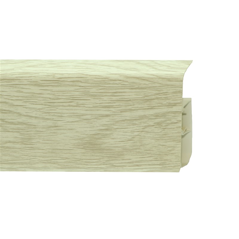 Утонченный и высокий профиль (80 мм) с острыми краями. Благодаря съёмной панели монтаж электрических проводов, покраска стен, оклеивание обоями возможны без демонтажа профилей. Конструкция позволяет монтировать и демонтировать плинтус без использования инструментов. Существует возможность размещения большого количества проводов, в том числе после монтажа. Специальная двухслойная технология: помимо слоя краски, дополнительно покрывается специальным лаком, благодаря чему его покрытие становится однородным, а это дополнительно защищает изделие от разного вида механических повреждений и вредного воздействия лучей УФ. Благодаря эластичному материалу, плинтус идеально прилегает даже к неровностям стен и полов. Плинтус 80 мм с реалистичной фактурой льняного дуба, устойчив к влаге и механическим нагрузкам, с кабель-каналом, лёгкий монтаж.
