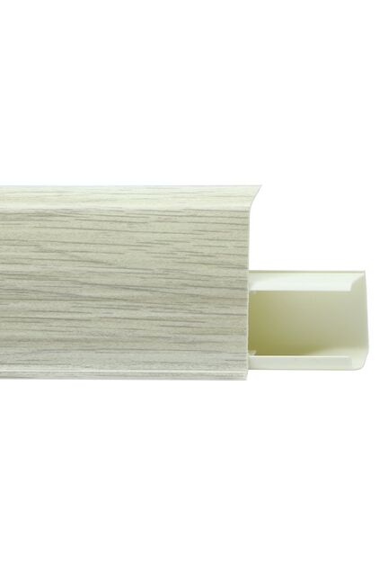 Утонченный и высокий профиль (72 мм) с острыми краями. Благодаря съёмной панели монтаж электрических проводов, покраска стен, оклеивание обоями возможны без демонтажа профилей. Конструкция позволяет монтировать и демонтировать плинтус без использования инструментов. Существует возможность размещения большого количества проводов, в том числе после монтажа. Специальная двухслойная технология: помимо слоя краски, дополнительно покрывается специальным лаком, благодаря чему его покрытие становится однородным, а это дополнительно защищает изделие от разного вида механических повреждений и вредного воздействия лучей УФ. Благодаря эластичному материалу, плинтус идеально прилегает даже к неровностям стен и полов. ПВХ плинтус 2,2 м высотой 72 мм с кабель-каналом, влагостойкий, ударопрочный, цвет дуб эден, легко монтируется и подходит для любого интерьера.
