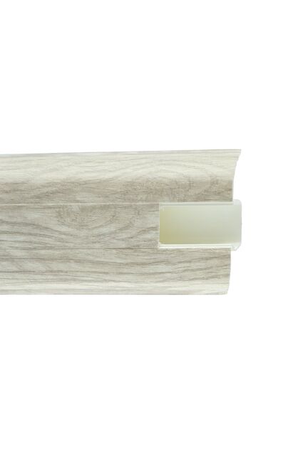 Утонченный и высокий профиль (58 мм) с острыми краями. Благодаря съёмной панели монтаж электрических проводов, покраска стен, оклеивание обоями возможны без демонтажа профилей. Конструкция позволяет монтировать и демонтировать плинтус без использования инструментов. Существует возможность размещения большого количества проводов, в том числе после монтажа. Специальная двухслойная технология: помимо слоя краски, дополнительно покрывается специальным лаком, благодаря чему его покрытие становится однородным, а это дополнительно защищает изделие от разного вида механических повреждений и вредного воздействия лучей УФ. Благодаря эластичному материалу, плинтус идеально прилегает даже к неровностям стен и полов. Практичный плинтус 2,5 м с кабель-каналом, высотой 58 мм, цвет дуб новарский. Легкий монтаж и долговечный материал для стильного интерьера.