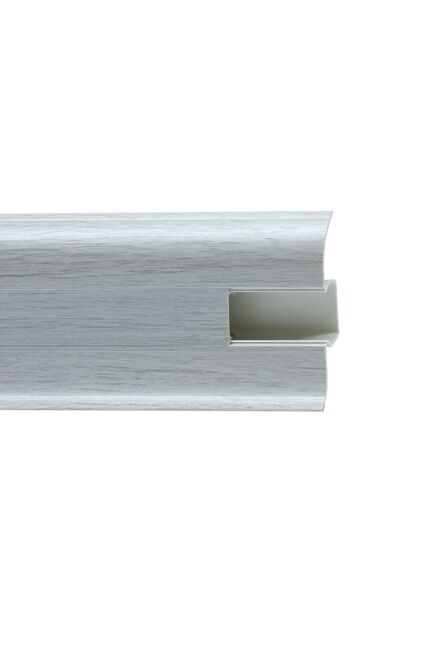 Плинтус 58 мм, длина 2,5 м, с кабель-каналом, устойчив к влаге и царапинам, легко монтируется, подходит для любых напольных покрытий.