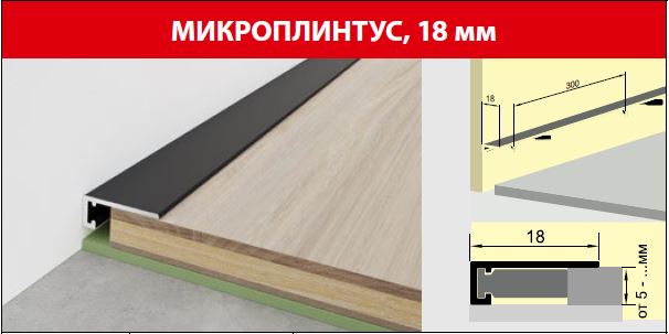 Применяется для установки на паркетную доску, пробковые полы клеевые и замковые, ламинат, SPC толщиной от 5мм. Позволяет практично и легко закрыть зазор между стеной и напольным покрытием. Для установки микроплинтуса не требуется креплений к стене. Отделка стен должна быть завершена, напольное покрытие уложено. Комплектуется 8-ми пружинами для установки. Алюминиевый микроплинтус 18 мм, 2,4 м, декор дуб сицилия – влагостойкий, прочный, минималистичный, для скрытого стыка пола и стены.