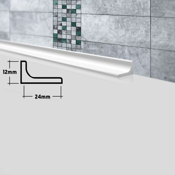 Влагостойкий, акриловый бордюр для герметизации стыков, белый, 12×24×1800 мм. Лёгкий монтаж, защита от плесени и эстетичный внешний вид.