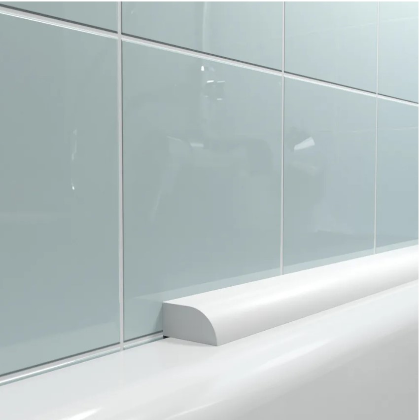 Служит для скрытия стыков между раковиной или ванной и стеной. Акриловый камень, из которого сделаны бордюры, очень плотный и прочный материал. В нем нет пор, поэтому в нём не заводятся плесень и грибок. Он прост в уходе, не боится влажности и бытовой химии, не меняет свой цвет и форму. Для распила потребуется ножовка по металлу или торцовочная пила с диском по дереву или алюминию, монтаж производится на герметик или водостойкий клей. Бордюр из акрила — влагостойкий, прочный, легко устанавливается, защищает стыки от грязи и плесени. Отличный выбор для ванной и кухни.
