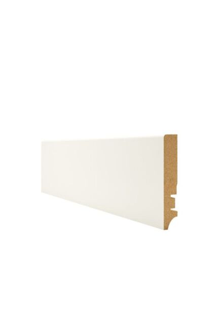 Элегантное решение для современного интерьера – качественный МДФ-плинтус белого цвета эффективно завершает отделку стен, защищая их основание от повреждений и загрязнений. Идеален для жилых и коммерческих помещений.