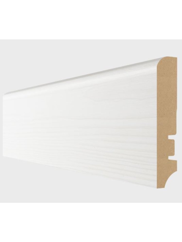 Плинтус покрыт инертным полимерным материалом с нанесённой краской и защитным лаком. Покрытие гарантирует максимальную устойчивость к механическим воздействиям и бытовой химии. Специальная технология нанесения обеспечивает повышенную влагостойкость изделия, подходит для кухонь и прихожих. Светлый МДФ-плинтус 81×16 мм, 2,4 м, устойчив к повреждениям, легко монтируется, идеально для интерьера и защиты стыков стен и пола.