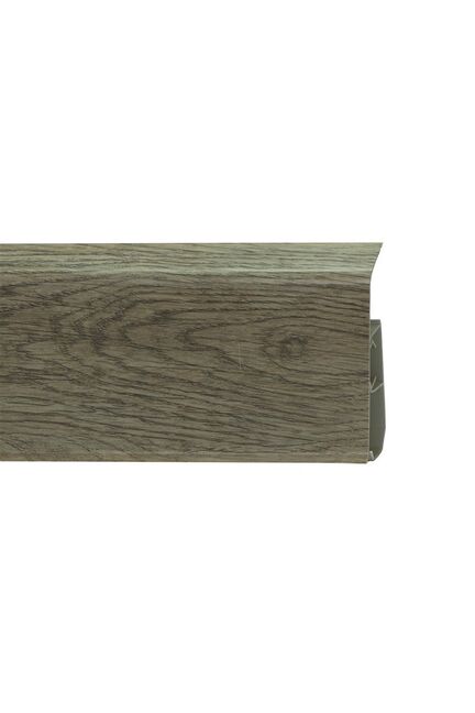 Утонченный и высокий профиль (80 мм) с острыми краями. Благодаря съёмной панели монтаж электрических проводов, покраска стен, оклеивание обоями возможны без демонтажа профилей. Конструкция позволяет монтировать и демонтировать плинтус без использования инструментов. Существует возможность размещения большого количества проводов, в том числе после монтажа. Специальная двухслойная технология: помимо слоя краски, дополнительно покрывается специальным лаком, благодаря чему его покрытие становится однородным, а это дополнительно защищает изделие от разного вида механических повреждений и вредного воздействия лучей УФ. Благодаря эластичному материалу, плинтус идеально прилегает даже к неровностям стен и полов. Дубовый плинтус 80 мм с износостойким покрытием, длина 2,2 м. Экологичность, долговечность и стиль для современного интерьера.