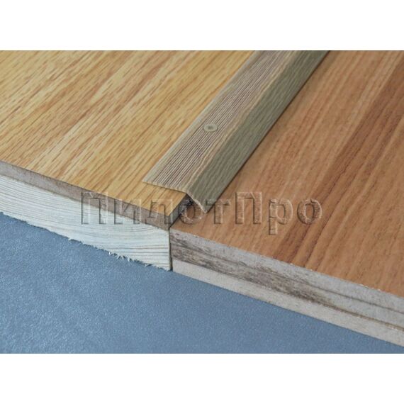 Надежный алюминиевый порог с кантом, ширина 29,2 мм, оттенок дуб, защищает стыки и скрывает перепады, прочный, влагостойкий и простой в монтаже.