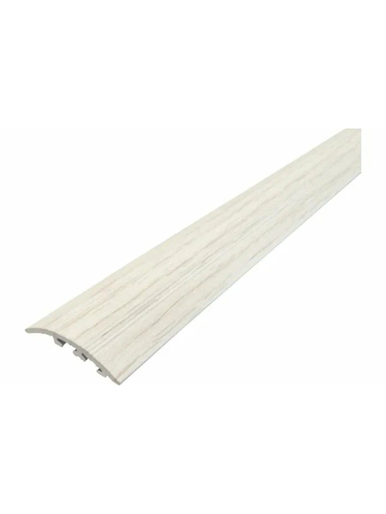 Надёжный алюминиевый порог с декоративной вставкой под белый дуб идеально подходит для скрытия стыков напольных покрытий между комнатами, а также защиты кромок и компенсации перепада высот. Лёгкий монтаж и универсальный размер обеспечивают быстрый результат без лишних затрат времени.