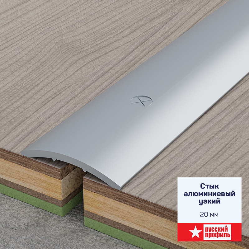 Прочный алюминиевый стык 20 мм х 0,9 м для аккуратного соединения напольных покрытий, легко монтируется, подходит для любых интерьеров.