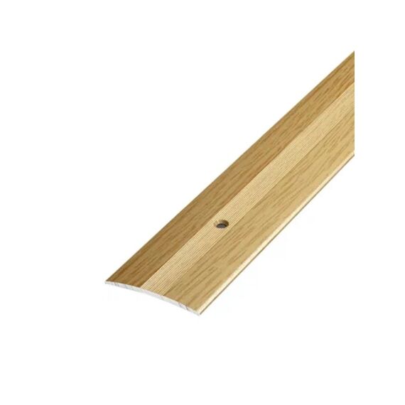 Широкий алюминиевый порог для аккуратного стыка напольных покрытий, цвет бук, скрытый крепеж, долговечность и устойчивость к износу.