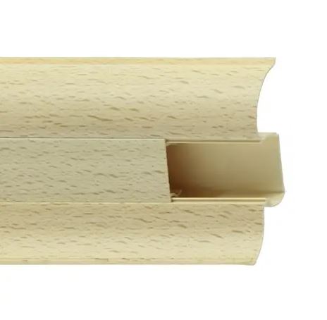 Утонченный и высокий профиль (58 мм) с острыми краями. Благодаря съёмной панели монтаж электрических проводов, покраска стен, оклеивание обоями возможны без демонтажа профилей. Конструкция позволяет монтировать и демонтировать плинтус без использования инструментов. Существует возможность размещения большого количества проводов, в том числе после монтажа. Специальная двухслойная технология: помимо слоя краски, дополнительно покрывается специальным лаком, благодаря чему его покрытие становится однородным, а это дополнительно защищает изделие от разного вида механических повреждений и вредного воздействия лучей УФ. Благодаря эластичному материалу, плинтус идеально прилегает даже к неровностям стен и полов.
