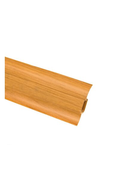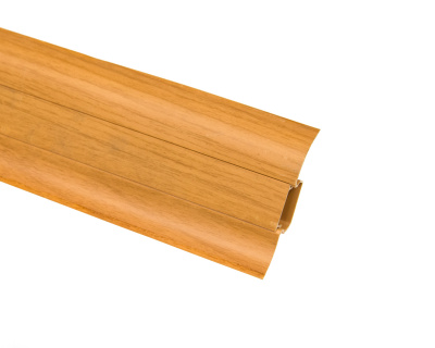 Утонченный и высокий профиль (58 мм) с острыми краями. Благодаря съёмной панели монтаж электрических проводов, покраска стен, оклеивание обоями возможны без демонтажа профилей. Конструкция позволяет монтировать и демонтировать плинтус без использования инструментов. Существует возможность размещения большого количества проводов, в том числе после монтажа. Специальная двухслойная технология: помимо слоя краски, дополнительно покрывается специальным лаком, благодаря чему его покрытие становится однородным, а это дополнительно защищает изделие от разного вида механических повреждений и вредного воздействия лучей УФ. Благодаря эластичному материалу, плинтус идеально прилегает даже к неровностям стен и полов. Заглушки для плинтуса 58 мм в цвете  "Вишня светлая", крепкое прилегание, защищают торцы, прочный пластик.