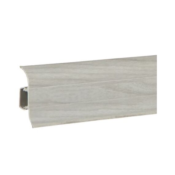 Утонченный и высокий профиль (58 мм) с острыми краями. Благодаря съёмной панели монтаж электрических проводов, покраска стен, оклеивание обоями возможны без демонтажа профилей. Конструкция позволяет монтировать и демонтировать плинтус без использования инструментов. Существует возможность размещения большого количества проводов, в том числе после монтажа. Специальная двухслойная технология: помимо слоя краски, дополнительно покрывается специальным лаком, благодаря чему его покрытие становится однородным, а это дополнительно защищает изделие от разного вида механических повреждений и вредного воздействия лучей УФ. Благодаря эластичному материалу, плинтус идеально прилегает даже к неровностям стен и полов.