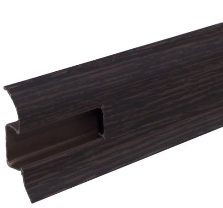 Утонченный и высокий профиль (58 мм) с острыми краями. Благодаря съёмной панели монтаж электрических проводов, покраска стен, оклеивание обоями возможны без демонтажа профилей. Конструкция позволяет монтировать и демонтировать плинтус без использования инструментов. Существует возможность размещения большого количества проводов, в том числе после монтажа. Специальная двухслойная технология: помимо слоя краски, дополнительно покрывается специальным лаком, благодаря чему его покрытие становится однородным, а это дополнительно защищает изделие от разного вида механических повреждений и вредного воздействия лучей УФ. Благодаря эластичному материалу, плинтус идеально прилегает даже к неровностям стен и полов. Внутренний угол 58 мм, цвет "венге", прочный пластик, 2 шт. в комплекте, простая установка, долговечность, для маскировки стыков плинтуса.