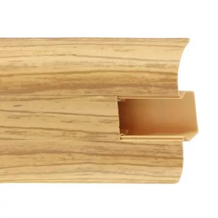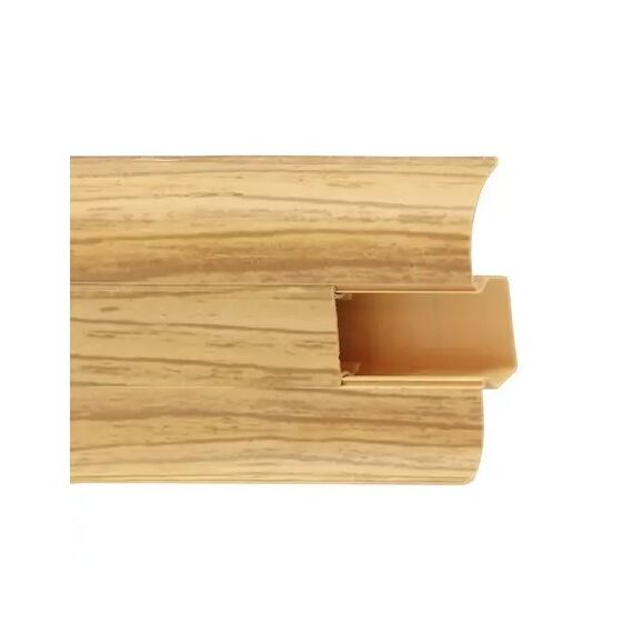 Утонченный и высокий профиль (58 мм) с острыми краями. Благодаря съёмной панели монтаж электрических проводов, покраска стен, оклеивание обоями возможны без демонтажа профилей. Конструкция позволяет монтировать и демонтировать плинтус без использования инструментов. Существует возможность размещения большого количества проводов, в том числе после монтажа. Специальная двухслойная технология: помимо слоя краски, дополнительно покрывается специальным лаком, благодаря чему его покрытие становится однородным, а это дополнительно защищает изделие от разного вида механических повреждений и вредного воздействия лучей УФ. Благодаря эластичному материалу, плинтус идеально прилегает даже к неровностям стен и полов. Соединитель для плинтусов 58 мм, прочный пластик, цвет дуб песочный, комплект 2 шт, для аккуратных и долговечных стыков в интерьере.