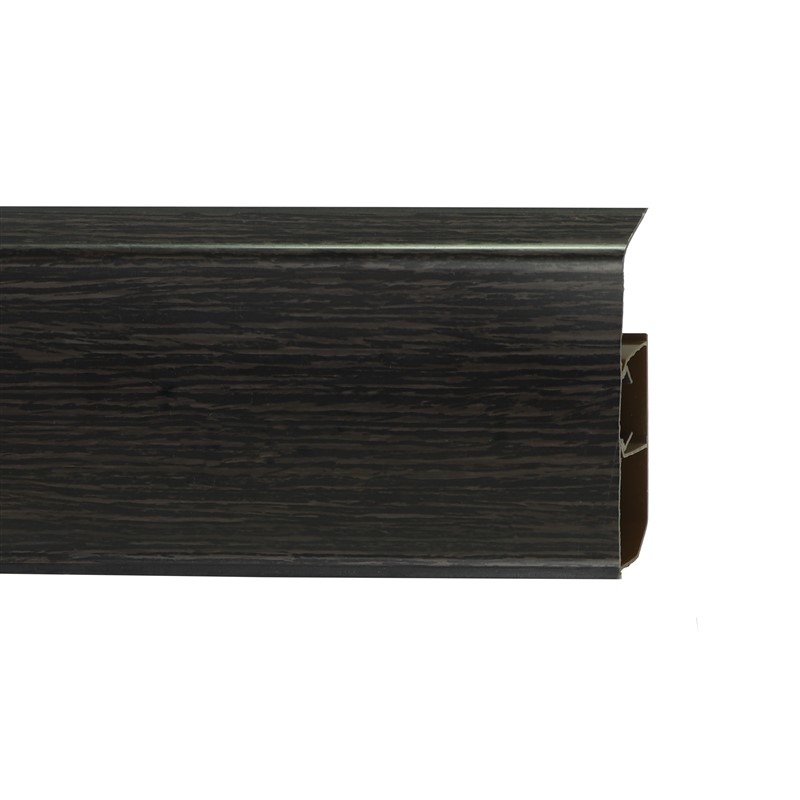 Утонченный и высокий профиль (80 мм) с острыми краями. Благодаря съёмной панели монтаж электрических проводов, покраска стен, оклеивание обоями возможны без демонтажа профилей. Конструкция позволяет монтировать и демонтировать плинтус без использования инструментов. Существует возможность размещения большого количества проводов, в том числе после монтажа. Специальная двухслойная технология: помимо слоя краски, дополнительно покрывается специальным лаком, благодаря чему его покрытие становится однородным, а это дополнительно защищает изделие от разного вида механических повреждений и вредного воздействия лучей УФ. Благодаря эластичному материалу, плинтус идеально прилегает даже к неровностям стен и полов. Комплект из двух заглушек 80 мм цвета венге цаво для аккуратного закрытия торцов мебельных или отделочных панелей, устойчивы к влаге и износу.