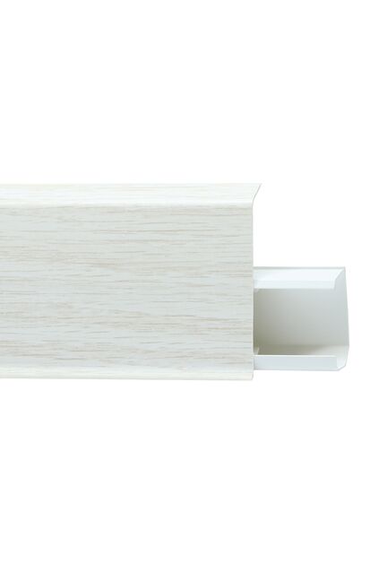 Утонченный и высокий профиль (72 мм) с острыми краями. Благодаря съёмной панели монтаж электрических проводов, покраска стен, оклеивание обоями возможны без демонтажа профилей. Конструкция позволяет монтировать и демонтировать плинтус без использования инструментов. Существует возможность размещения большого количества проводов, в том числе после монтажа. Специальная двухслойная технология: помимо слоя краски, дополнительно покрывается специальным лаком, благодаря чему его покрытие становится однородным, а это дополнительно защищает изделие от разного вида механических повреждений и вредного воздействия лучей УФ. Благодаря эластичному материалу, плинтус идеально прилегает даже к неровностям стен и полов.