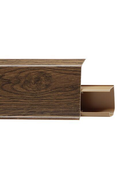 Утонченный и высокий профиль (72 мм) с острыми краями. Благодаря съёмной панели монтаж электрических проводов, покраска стен, оклеивание обоями возможны без демонтажа профилей. Конструкция позволяет монтировать и демонтировать плинтус без использования инструментов. Существует возможность размещения большого количества проводов, в том числе после монтажа. Специальная двухслойная технология: помимо слоя краски, дополнительно покрывается специальным лаком, благодаря чему его покрытие становится однородным, а это дополнительно защищает изделие от разного вида механических повреждений и вредного воздействия лучей УФ. Благодаря эластичному материалу, плинтус идеально прилегает даже к неровностям стен и полов.