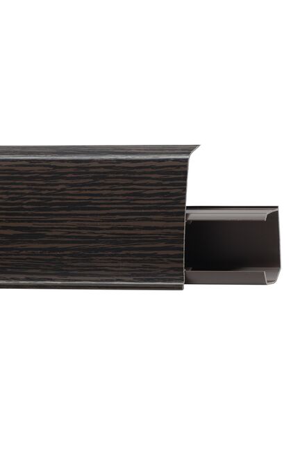 Утонченный и высокий профиль (72 мм) с острыми краями. Благодаря съёмной панели монтаж электрических проводов, покраска стен, оклеивание обоями возможны без демонтажа профилей. Конструкция позволяет монтировать и демонтировать плинтус без использования инструментов. Существует возможность размещения большого количества проводов, в том числе после монтажа. Специальная двухслойная технология: помимо слоя краски, дополнительно покрывается специальным лаком, благодаря чему его покрытие становится однородным, а это дополнительно защищает изделие от разного вида механических повреждений и вредного воздействия лучей УФ. Благодаря эластичному материалу, плинтус идеально прилегает даже к неровностям стен и полов.