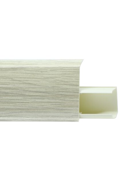 Утонченный и высокий профиль (72 мм) с острыми краями. Благодаря съёмной панели монтаж электрических проводов, покраска стен, оклеивание обоями возможны без демонтажа профилей. Конструкция позволяет монтировать и демонтировать плинтус без использования инструментов. Существует возможность размещения большого количества проводов, в том числе после монтажа. Специальная двухслойная технология: помимо слоя краски, дополнительно покрывается специальным лаком, благодаря чему его покрытие становится однородным, а это дополнительно защищает изделие от разного вида механических повреждений и вредного воздействия лучей УФ. Благодаря эластичному материалу, плинтус идеально прилегает даже к неровностям стен и полов.