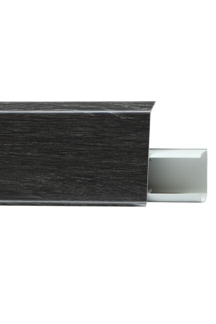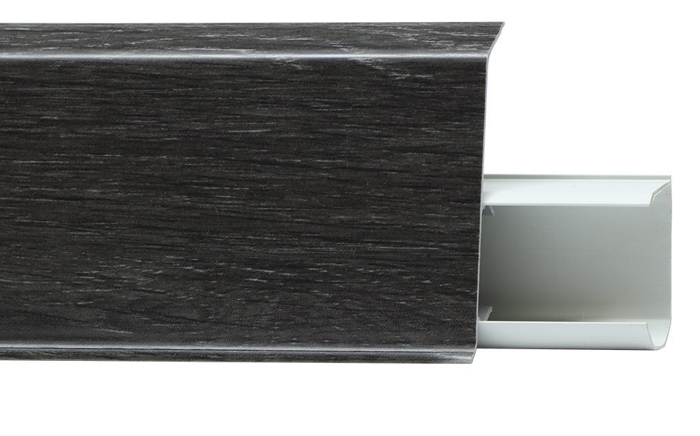 Утонченный и высокий профиль (72 мм) с острыми краями. Благодаря съёмной панели монтаж электрических проводов, покраска стен, оклеивание обоями возможны без демонтажа профилей. Конструкция позволяет монтировать и демонтировать плинтус без использования инструментов. Существует возможность размещения большого количества проводов, в том числе после монтажа. Специальная двухслойная технология: помимо слоя краски, дополнительно покрывается специальным лаком, благодаря чему его покрытие становится однородным, а это дополнительно защищает изделие от разного вида механических повреждений и вредного воздействия лучей УФ. Благодаря эластичному материалу, плинтус идеально прилегает даже к неровностям стен и полов.