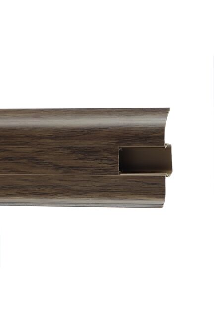 Утонченный и высокий профиль (58 мм) с острыми краями. Благодаря съёмной панели монтаж электрических проводов, покраска стен, оклеивание обоями возможны без демонтажа профилей. Конструкция позволяет монтировать и демонтировать плинтус без использования инструментов. Существует возможность размещения большого количества проводов, в том числе после монтажа. Специальная двухслойная технология: помимо слоя краски, дополнительно покрывается специальным лаком, благодаря чему его покрытие становится однородным, а это дополнительно защищает изделие от разного вида механических повреждений и вредного воздействия лучей УФ. Благодаря эластичному материалу, плинтус идеально прилегает даже к неровностям стен и полов. Соединитель для плинтуса 58 мм, "Дуб Гартвис", 2 шт. в упаковке. Прочный, эстетичный, быстро монтируется, обеспечивает надежный и аккуратный стык.
