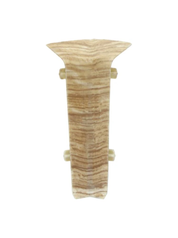 Внутренний угол Quadro в оттенке "Дуб Ириска" 80мм — идеальное решение для аккуратного оформления стыков напольного плинтуса, сохранения общей эстетики и защиты углов от повреждений в жилых и коммерческих пространствах.