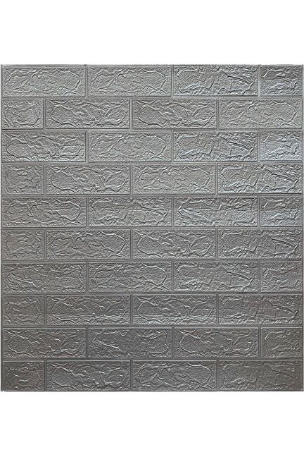 Самоклеящаяся панель 700×770 мм, рельеф кирпича, серый металлик. Устойчива к влаге, легко монтируется, скрывает дефекты стен.