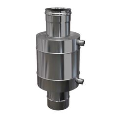 Бак-теплообменник (дымоход с водяным контуром) предназначен для использования совместно с банными печами и отопительными котлами для подогрева воды и последующего ее использования в помывочных и душевых помещениях. Конструкция состоит из герметичного корпуса, выполненного из нержавеющей стали AISI 304. Важно! Использование бака-теплообменника возможно только в сочетании с накопительным баком и теплогенерирующим аппаратом, имеющим дымоотводящий канал. Бак на дымоход 12 л для быстрого нагрева воды, стальная конструкция с антикоррозийным покрытием, для бань и дач, диаметр трубы 115 мм.