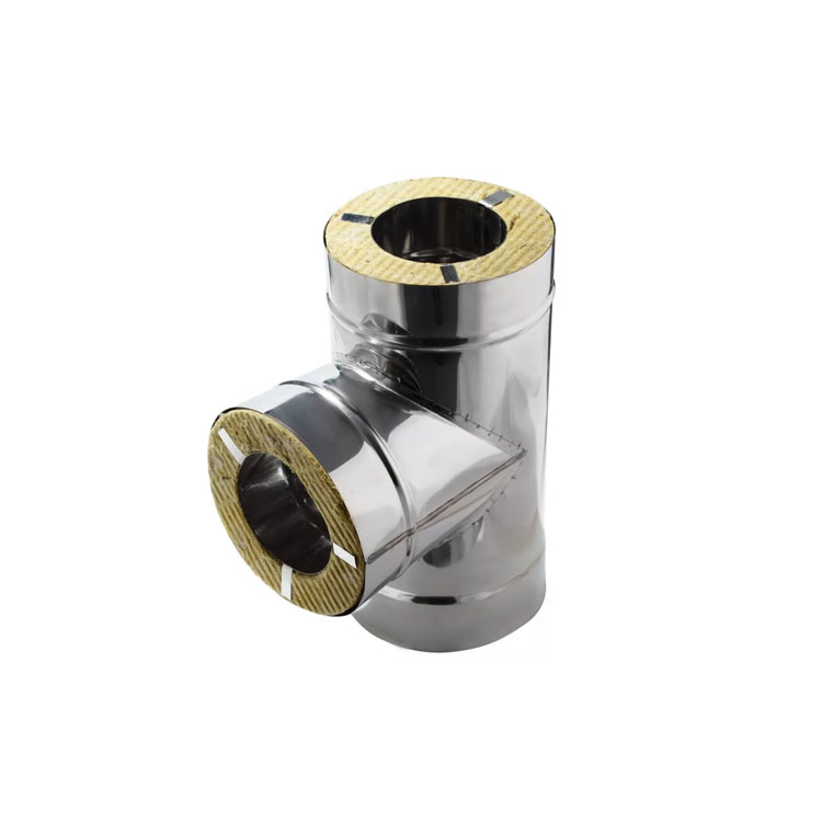 Тройник сэндвич 90° из нержавеющей стали 430, диаметр 120/200 мм — идеален для монтажа долговечных и пожаробезопасных дымоходов.