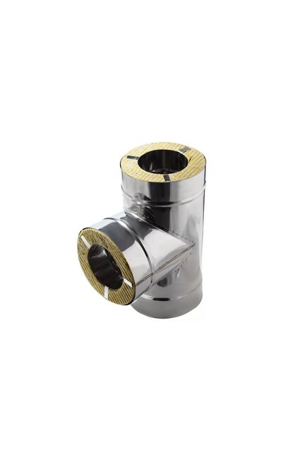 Тройник 90° сэндвич из нержавеющей стали 0,5 мм, диаметр 150/210 мм, теплоизоляция, стойкость к коррозии, монтаж без сварки, для дымоходов и вентиляции.