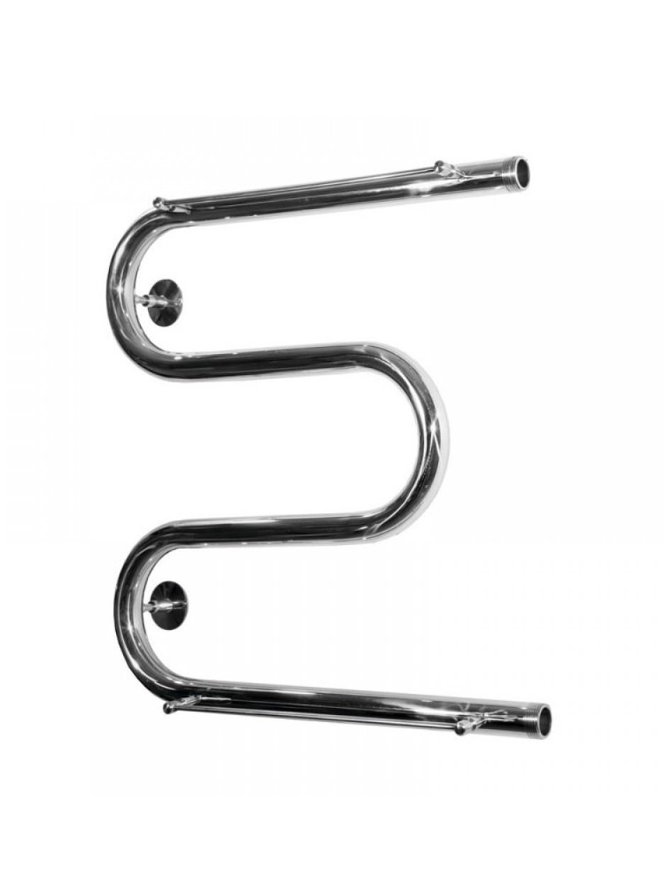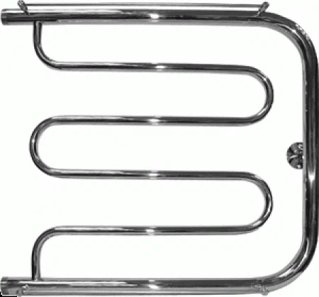 Водяное боковое подключение, Размер подключения (3/4"-1"), 4 вставки, Sотапл. пом.<1,58м², с полочкой Компактный полотенцесушитель 50×50 см, стальной, устойчив к коррозии, удобен для сушки нескольких полотенец и защищает ванную от сырости.