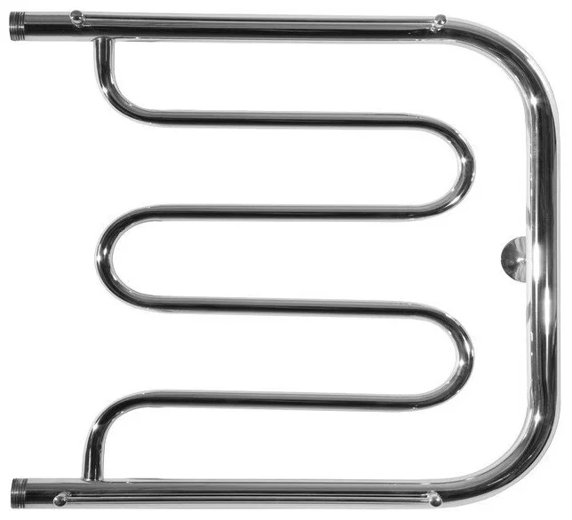 Водяное боковое подключение, Размер подключения 1", 4 вставки, Sотапл. пом.<2,95м², с полочкой Практичный водяной полотенцесушитель 500×600 мм из нержавеющей стали для сушки и обогрева с универсальным крепежом и высокой надежностью.