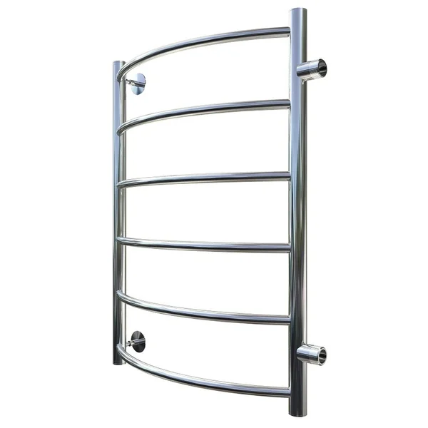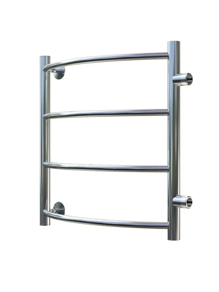 Полотенцесушитель типа "лесенка" с боковым подключением дуговидными вставками с полкой. Серия 1 предполагает равномерное размещение вставок. Полотенцесушитель имеет наружнюю резьбу на боковых выводах. В комплекте имеются заглушка с краном маевского и телескопические держатели. Стильный полотенцесушитель из нержавеющей стали 50×60×40 см с антикоррозийным покрытием — надежное решение для сушки полотенец и создания уюта в ванной.