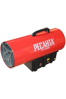 Газовая тепловая пушка Ресанта ТГП-30000 используется для обогрева больших помещений с хорошей вентиляцией. Металлическая решетка на сопле препятствует попаданию внутрь устройство различных предметов. Ручка, расположенная на корпусе, упрощает транспортировку тепловой пушки. Предусмотрена защита от перегрева. Оборудование работает на сжиженном газе. Предусмотрены пьезорозжиг, защита от перегрева и температурный датчик на клапане газа. Газовая тепловая пушка на 30 кВт для быстрого обогрева до 300 м², с пьезоподжигом, регулировкой потока и надежной защитой от перегрева.