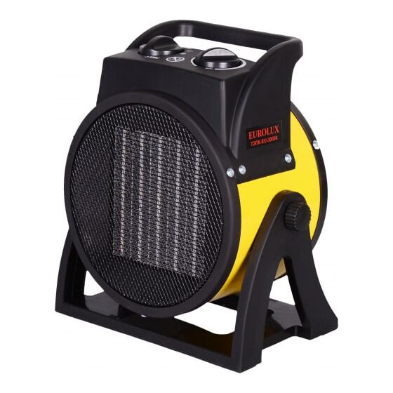Тепловая электрическая пушка Eurolux ТЭПК-EU-3000K керамический нагревательный элемент, круглая предназначена для вентиляции и обогрева жилых и производственных помещений, складов, гаражей, а также для обогрева и сушки в строительстве. Прибор относится к тепловым пушкам круглого типа. Нагревательный элемент - керамический. Данная модель рассчитана на питание от электросети переменного тока частотой 50 Гц, номинальным напряжением 220-230В (однофазная). Устанавливается на полу.