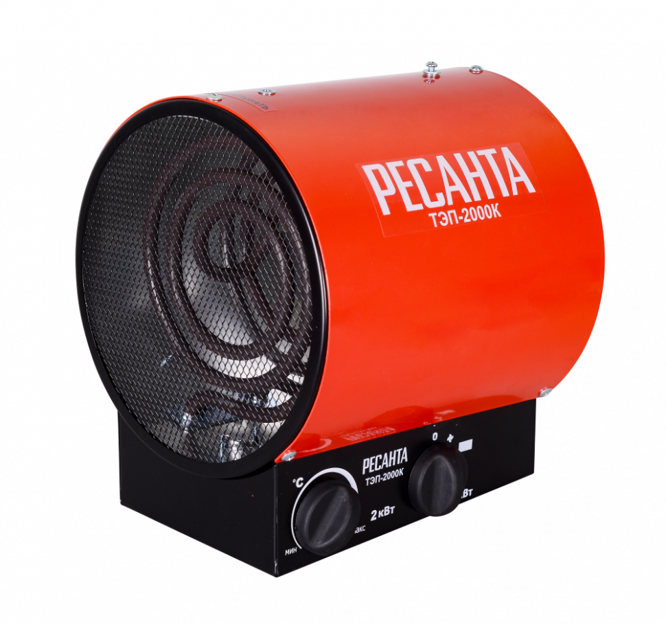 Тепловая пушка РЕСАНТА ТЭП-2000К, 2 кВт, круглая. Быстрый нагрев, защита от перегрева, термостат, прочный корпус. Идеальна для стройки и ремонта.