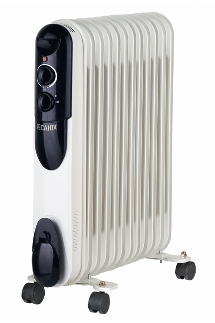 Масляный радиатор Ресанта ОМПТ-12Н, состоящий из 12 секций, сделает любое помещение размерами до 25 м², теплым и уютным. Радиатор устанавливается на пол, а за счет колесиков и удобной ручки его можно легко перемещать в любое место комнаты. Радиатору не требуется особого ухода, достаточно время от времени протирать его влажной тряпкой. Он подключается к домашней электросети (напряжение 220/240 В) с помощью шнура с вилкой. В отключенном состоянии шнур убирается в специальный отсек.
