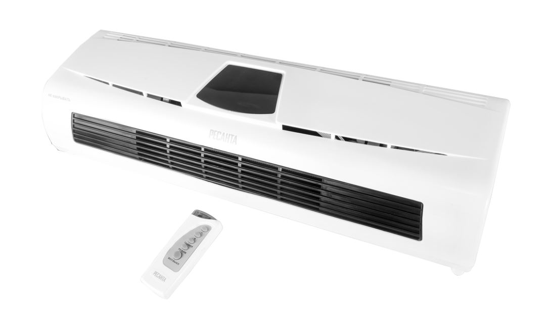 Быстро обогреть помещение площадью до 25 м² позволит модель тепловентилятора Ресанта ТВК-5. Она представляет собой компактный отопительный прибор мощностью 2 кВт с керамическим нагревательным элементом, который практически мгновенно выходит на заданный температурный режим и осуществляет нагрев, не пересушивая воздух. Этот тепловентилятор может работать в режиме обогревателя и просто вентилятора, поэтому относится к агрегатам круглогодичного применения. Модель Ресанта ТВК-5 оснащена электронным дисплеем со световой индикацией работы и пультом дистанционного управления, что значительно упрощает все настройки и обращение с прибором. Тепловентилятор монтируется на стену, при таком способе монтажа он может использоваться в качестве тепловой завесы. Безопасность работы обогревателя обеспечена системой термозащиты, которая отключает питание прибора при перегреве. Вес прибора – 2.5 кг. Питание осуществляется от обычной бытовой сети – 220 В, 50 Гц. Эффективный обогрев помещений до 50 м², мощность 5 кВт, две ступени н