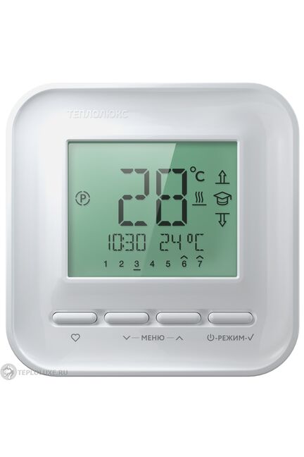 Терморегуляторы серии ТР 500 выполнены в уникальном дизайне. Особый стиль и современность визуально выделяют эти регуляторы из ряда аналогов и позволяют вписать их в любой интерьер. ТР 520. Домашний хранитель теплоты Программирование 4 событий. Сохранит до 70% электричества. Разогреет теплый пол к Вашему возвращению домой и выключит, когда никого нет дома. Полностью разделяет Ваш стиль жизни, имеет отдельное расписание на каждый день недели. Тип терморегулятора: цифровой; Напряжение питания: 220 В (+10% -15%); Максимальный коммутируемый ток нагрузки: 16 А (3,5 кВт); Потребляемая мощность (терморегулятор): 450 мВт; Масса: 150 г; Габариты: 86х86х35 мм; Степень защиты: Ip20; Класс защиты: II; Выносной датчик температуры пола (TST02): NTC 6,8 кОм; Длина установочного провода датчика: 2 м; Допустимая окружающая температура: от +5°С до +40°С; Допустимая отн. влажность воздуха: 80%; Пределы регулирования температуры: от +5°С до +35°С; Цвет корпуса: белый, кремовый Электро