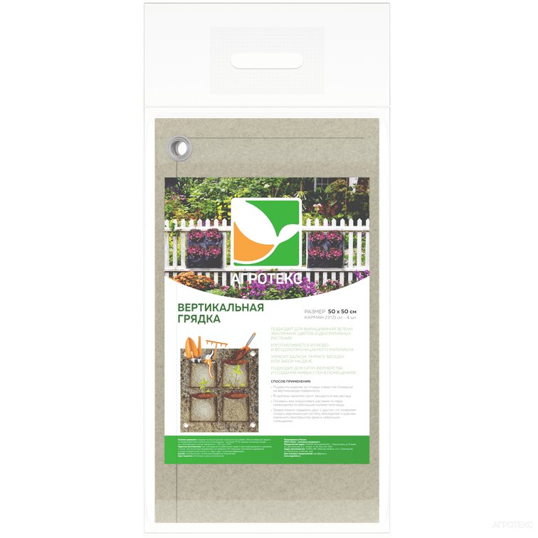Позволяет вырастить свежую зелень, цветы и ягоды в домашних условиях. Служит декоративным украшением балконов, террас, беседок и т.п. Компактная вертикальная грядка 30×60 см с 2 карманами для экономии места и удобного выращивания растений на балконе или в саду.