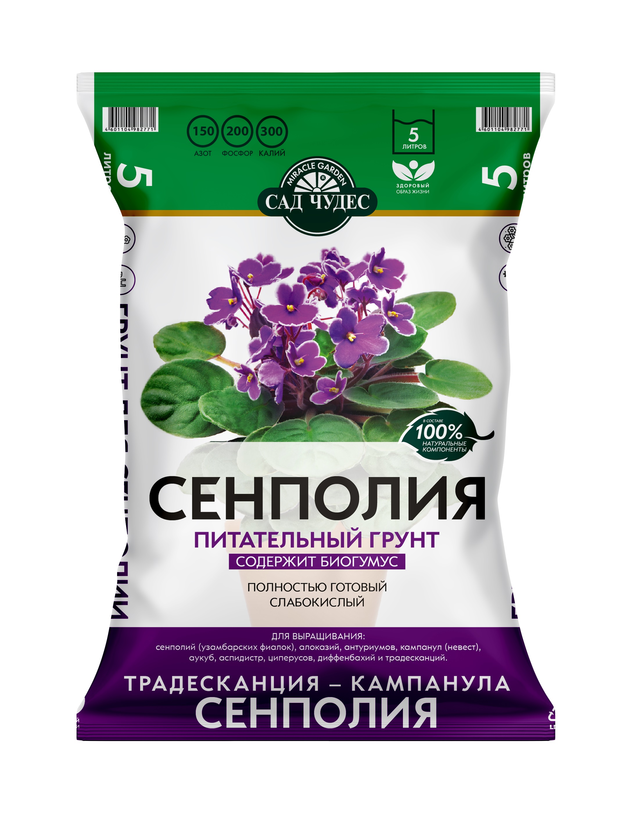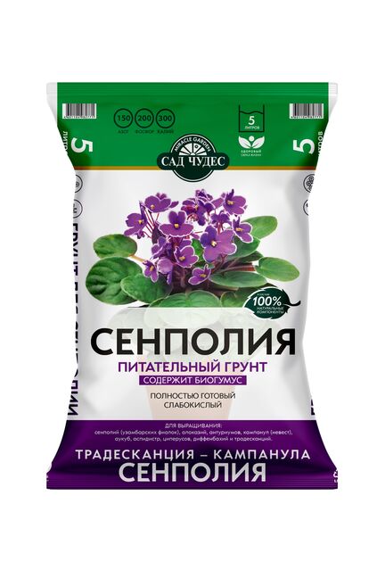 Готовый питательный грунт 5 л для фиалок: обеспечивает быстрый рост, защиту от застоя влаги и яркое, продолжительное цветение.