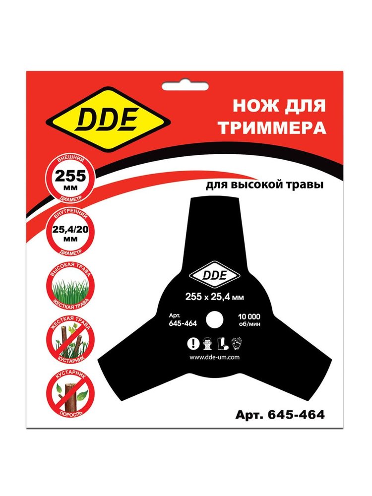Максимальная эффективность при очистке газонов и придомовых территорий — 3-хлопастной диск диаметром 255 мм гарантирует точный и чистый срез травы, нежёстких кустарников и сорняков. Идеален для триммеров и мотокос с посадочным отверстием 25,4 мм.
