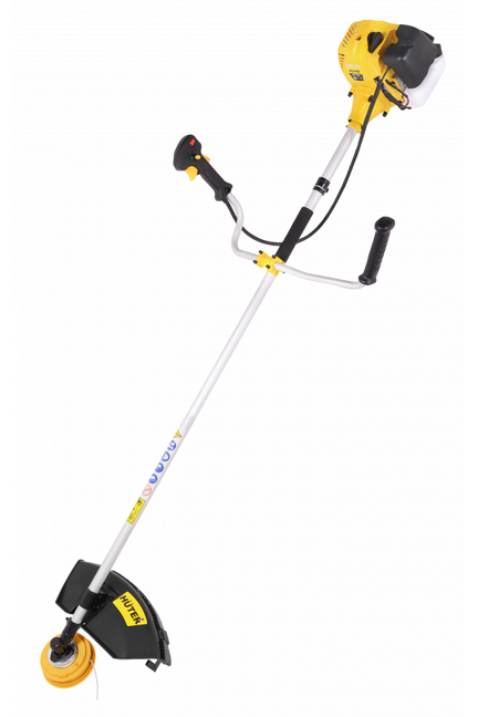 У Huter GGT-1500TX имеется производительный двигатель, который работает от бензина и обладает мощностью в 2 л.с. Для этого предусмотрен топливный бак под бензин на 1.2 л. Исходя из этого, мощность устройства – 1500 Вт, а максимальное число оборотов в минуту достигает 9500 т. Мощность 1,5 кВт, леска и диск в комплекте, неразборный вал, ремень и очки, для скашивания густой травы и кустарников.