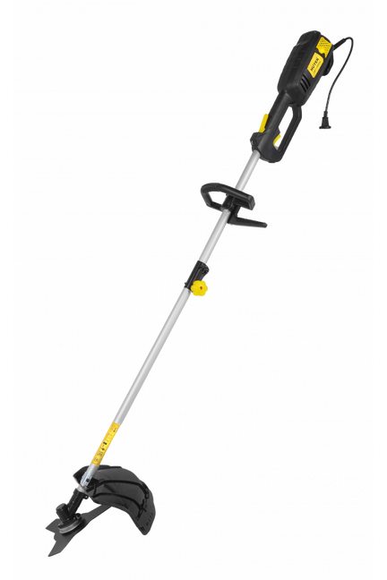Комплектация: леска / нож. Питание электрокосы Хутер от обычной электросети 220 вольт. Номинальная мощность электромотора 1500 Вт. Режущий инструмент сменный: леска 2 мм - диаметр кошения леской составляет 350 мм. Нож четырехлопастной - 420 мм. Частота вращения - до 7600 оборотов в минуту. Штанга разъемная. Электродвигатель находится в верхней части косы. Мощность 1,5 кВт, режет леской и диском, быстро косит густую траву и кустарник. Для дачи и сада, удобная регулировка и надежность.