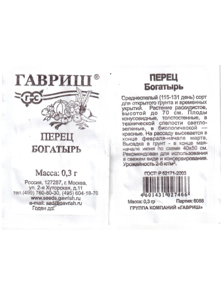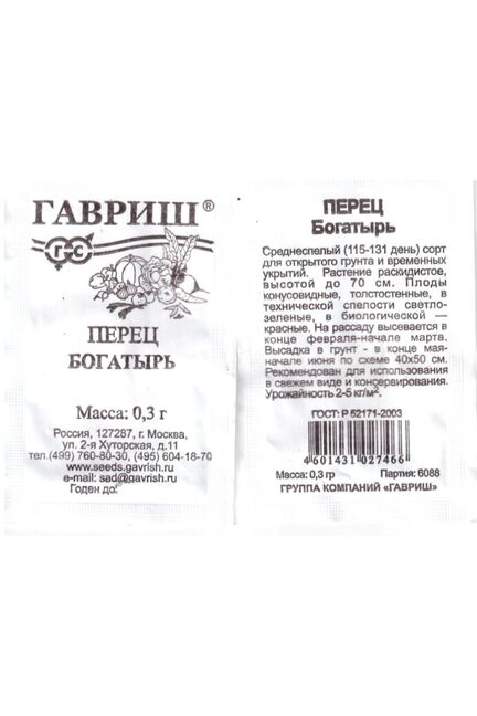 Семена Перец Богатырь б/п Гавриш в Амурск