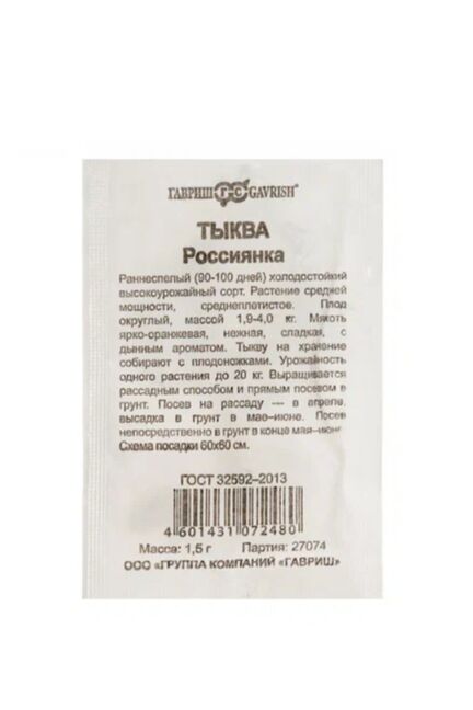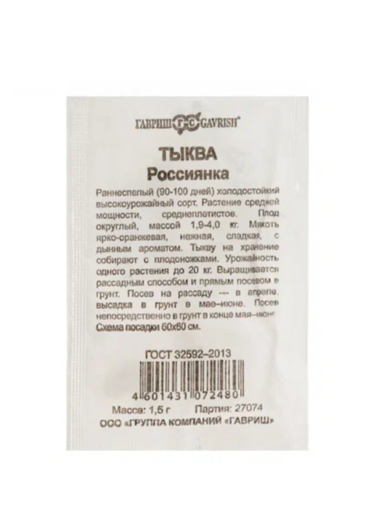 Семена Тыква Россиянка 1,5гр. б/п Уд. с. Гавриш
