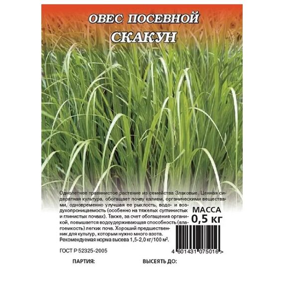 Сидерат Овес посевной Скакун 0,5кг. Гавриш